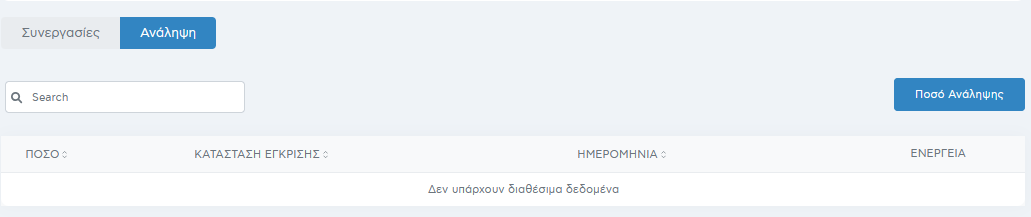 - Ανάληψη προμηθειών: στην υποενότητα «Ανάληψη» βλέπετε ιστορικό αναλήψεων και μπορείτε να ζητήσετε πληρωμή διαθέσιμου υπολοίπου.
