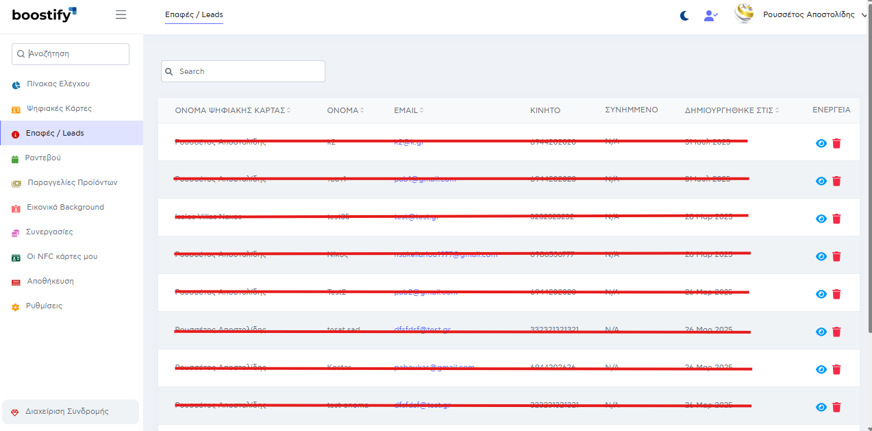 Η ψηφιακή κάρτα αποτελεί το βασικό προϊόν του Boostify. Παρακάτω θα βρεις όλες τις υποενότητες της καρτέλας «Ψηφιακές Κάρτες» με τις αντίστοιχες λειτουργίες τους.